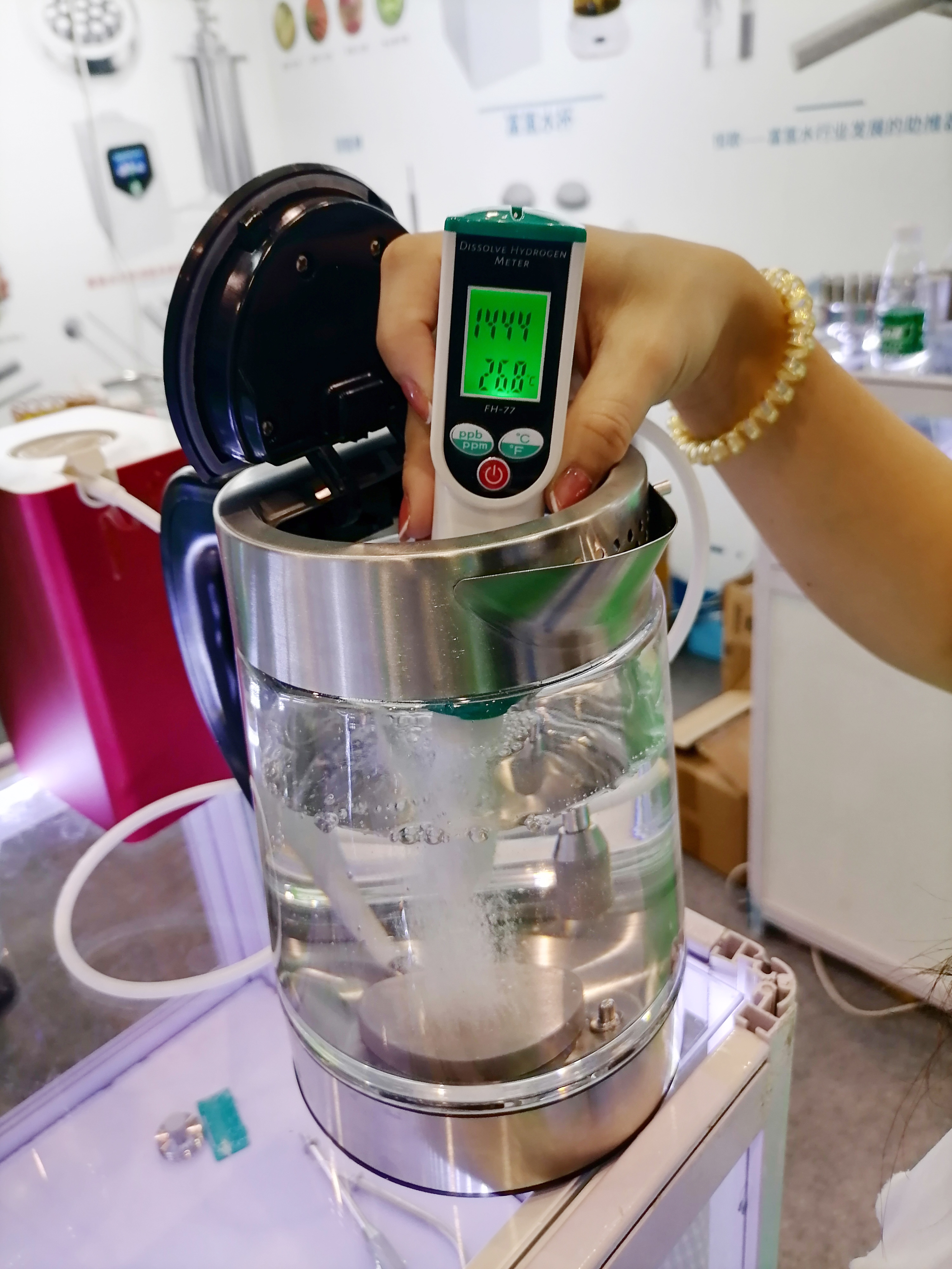 ??????? 恒歌溶氫棒作為拳頭產品,一經展出受到觀眾的熱烈追捧,展位上人流絡繹不絕。觀眾紛紛停下腳步了解恒歌這款溶氫棒。