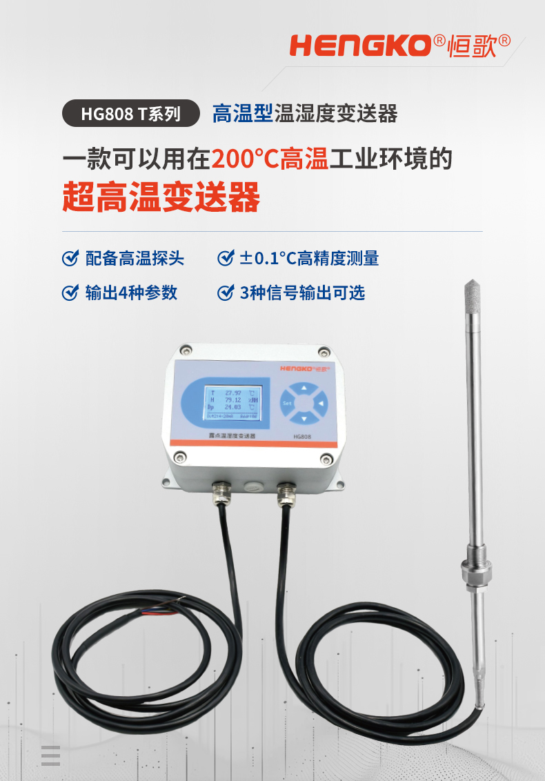 HG808-T系列溫濕度變送器,一款可用在200°C高溫工業環境的變送器